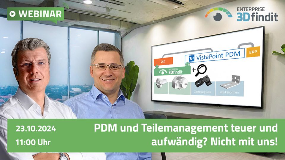 Unsere Experten Christof Füller (FD/MethCon) und Alen Blechinger (CADENAS) zeigen, welche Vorteile die Kombination VistaPoint-PDM und ENTERPRISE 3Dfindit bietet.