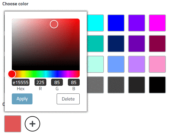 You can specify colors directly by entering RGB code or moving the point in the color field. Finally click on . If needed, you can add more colors.