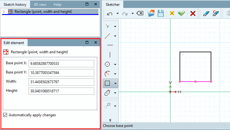 Group tools: By default, the tools in the Sketcher are grouped. You can display the subitems when clicking on the small little black arrow.