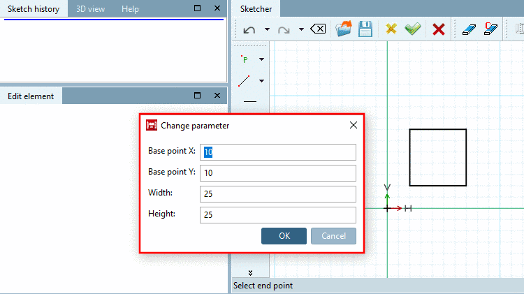 To every intersect point, a certain calculation effort is connected, which requires storage space, which is why a limit for calculated intersect points is set in this field. If the set upper limit of the calculated intersect points is exceeded, the intersect points in the sketch are visible themselves, however their calculated value is no longer accounted for in the system.