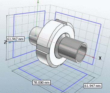 Display of the part in plastic 3D preview. The three dimensional effect only takes place when using red/cyan glasses! To increase the effect of the plastic effect, the selected part is displayed flushed. The background is automatically darkened. The option red/cyan effect can be used independent of the display mode (Lines, Hidden lines, Shaded, etc.). |