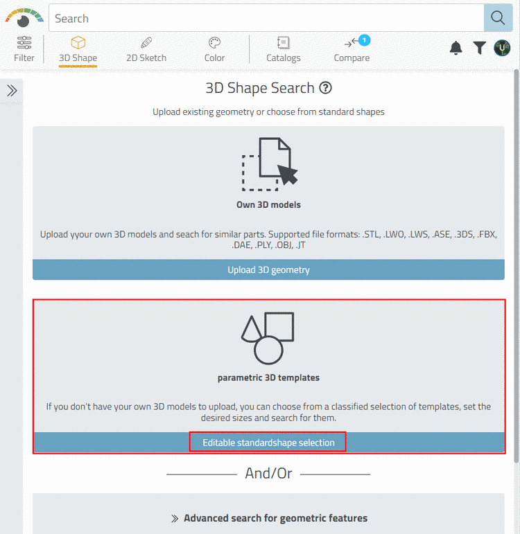 Find models with the help of a parametric template.