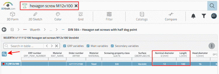 In this example DIN 913 has been removed after a hit, which simplifies the next analysis step (=finding the correct dimension M20x30).