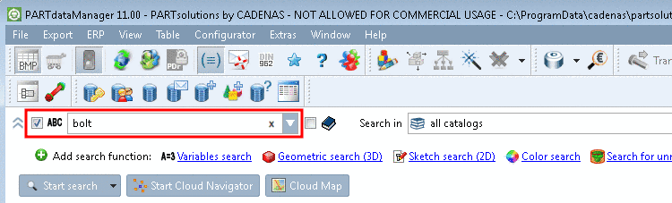 ERP-Variables are always displayed in the dialog box (when using an ERP integration). With these variables you can search catalog-spanning.