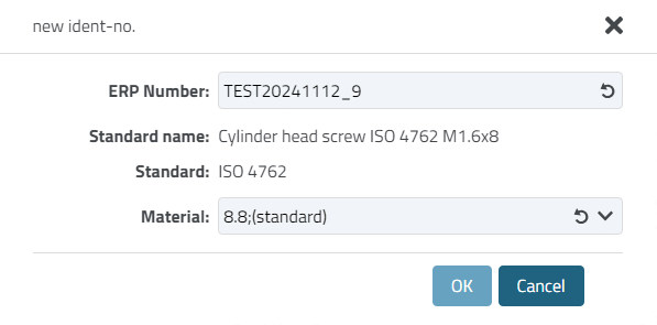 4. Enter the ERP number [ERP Number], select the desired material [Material] and confirm with OK.