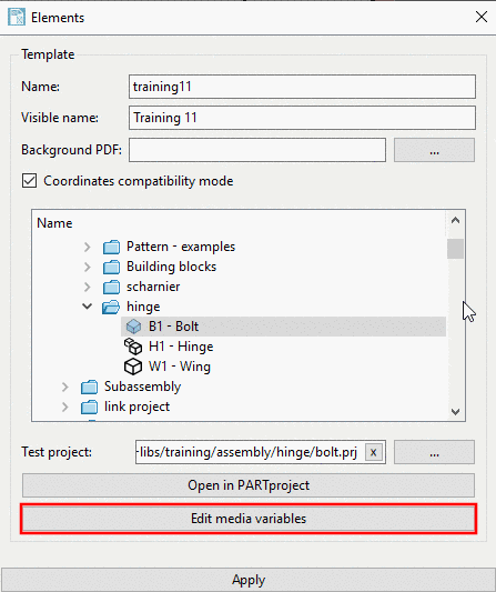 -> In the lower half of the dialog box the already existing Media Variables of the selected type are displayed.