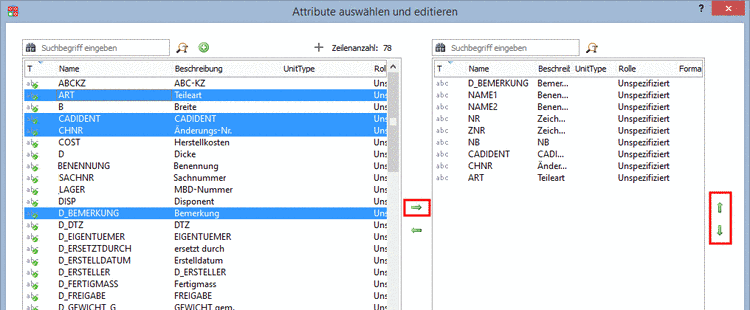 At display type Table, all attribute names are listed in one single field one after another. Furthermore you can conduct a textual search over all products here. Top-right the total number of products is shown.