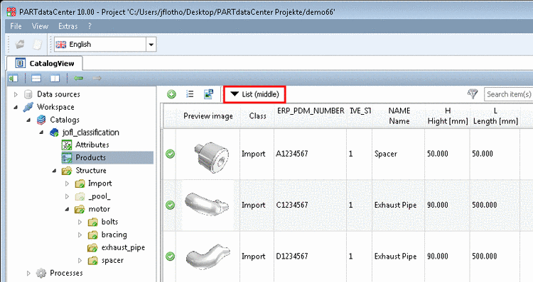 When choosing one of these options you get a table view where each attribute is displayed in its own column. The three options differ concerning size of the displayed preview image.