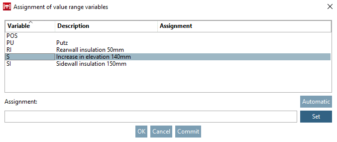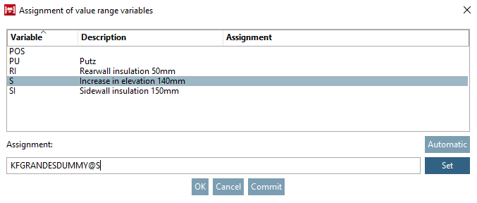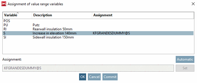 For the first part (normally this is the dummy part), assignments have to be made manually. For other parts, normally the function Automatic saves considerable time (see ???).