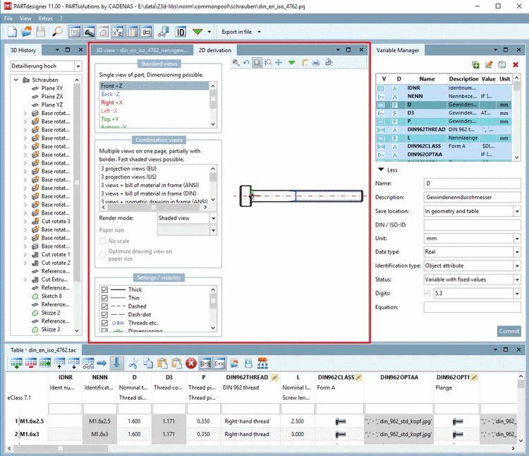 Details on 2D view in PARTdataManager can be found under Section 12.2, “ Create 2D derivation ”.