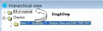 Part (folders) gotten from Drag & Drop can either be deposited as subdirectories in the Main folders (Check-in or Bill of material) or with insertion points - e..g. Pos.3.1 within folder Pos.: 3.