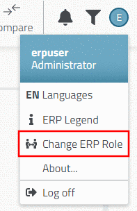 If the role shall be change during a session, in the login dialog, click on Change ERP Role.