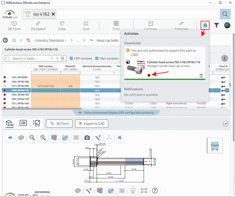 By default, the Export condition is defined in a way that exporting without ERP number is not possible. Details on this can be found under Section 4.7.3.1.7, “ Export condition - plinkgroups.cfg -> Block [Role_name] -> Key "EXPORTRESTRICTION" ” in PARTsolutions - Administration Manual.