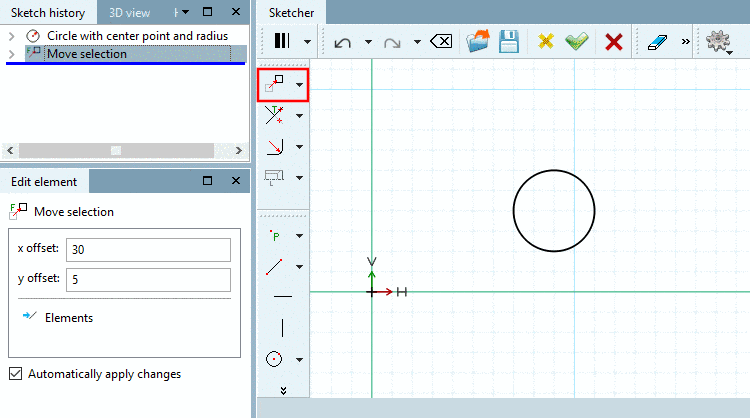 Move sketch element with the help of a vector