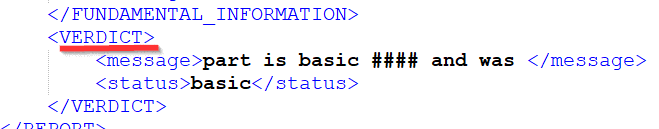 XMLREPORTS: Here, all reports are listed in the form of xml files (generated by the tool for batch verification "ECADPS3VERIFY"). When opening a file in any XML editor, you can see the information displayed in the dialog Extended ECLASS validation report, dialog area Report.