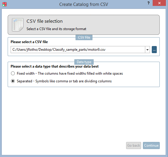 Via search button ... select the desired CSV file and determine the file type.