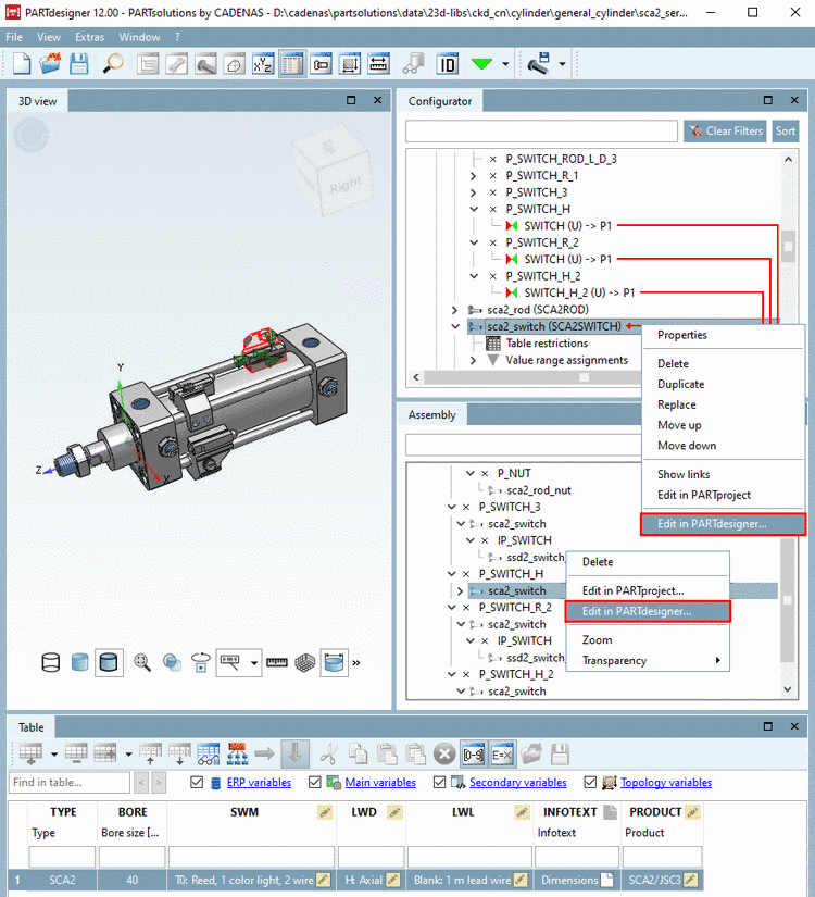Geometries, preview images and technical views can be added in further working steps. On this see Section 1.3.5.3, “ Edit documents in product ”. If the table contains the PDM document number (in the above example "PDM_ID"), the PDM documents can be automatically accessed and respective processes be triggered via scripting solutions.