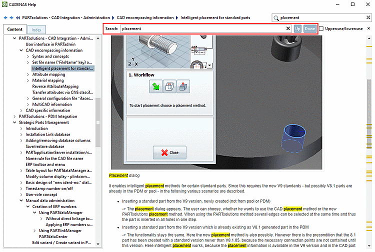 When you open a hit, a search is automatically started with the search term. The local hits on the page are highlighted in color and you can use and to display all occurrences.