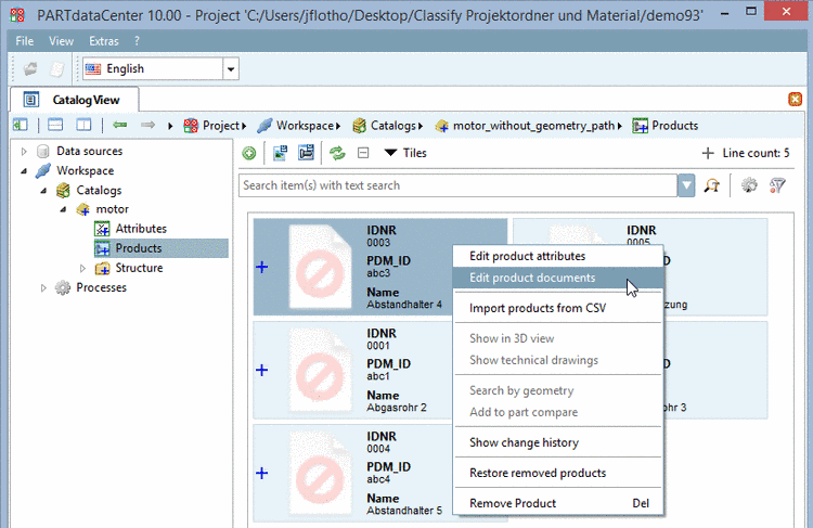 The call happens in PARTdataCenter via context menu command Edit documents in product -> Add technical view.