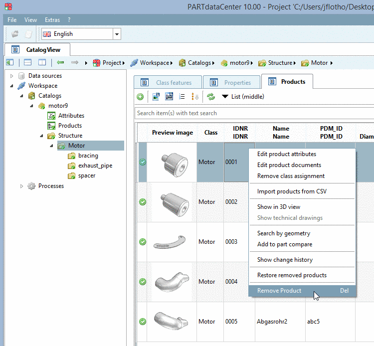 3. In order to restore the removed product, in the dialog area Products or on the respective class in the tree, call the context menu command Restore removed products.