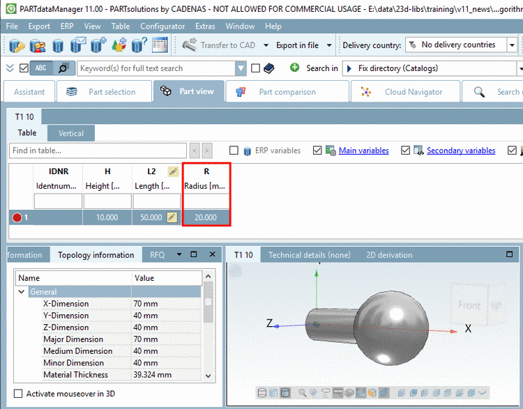Optionally, the Variable R with Attribute algorithm can be displayed in PARTdataManager.