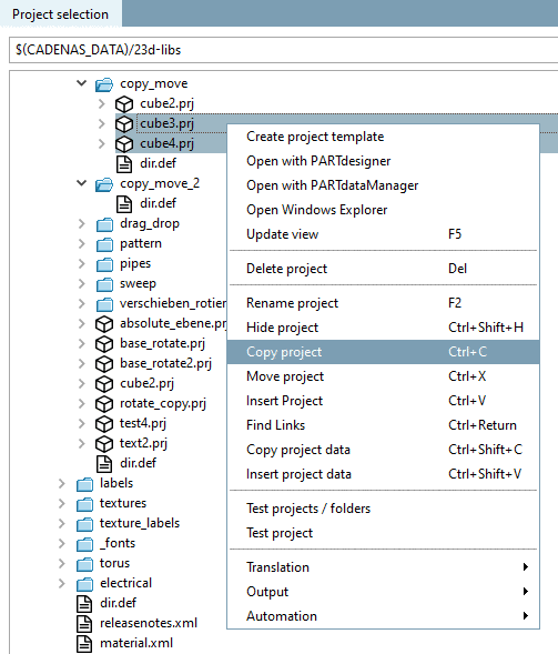 Project files can be copied to any positions within