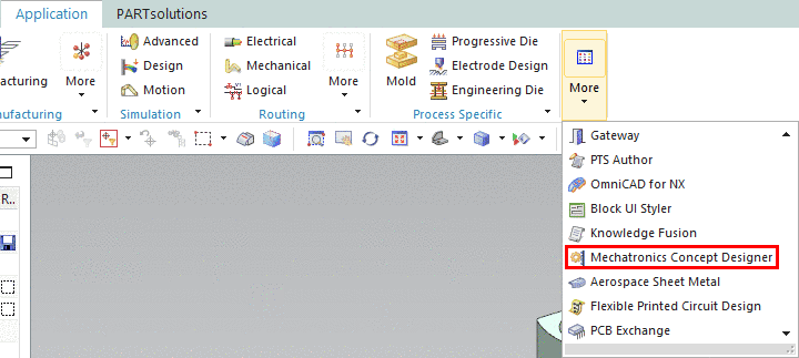 Go to Application > More > Mechatronics Concept Designer: