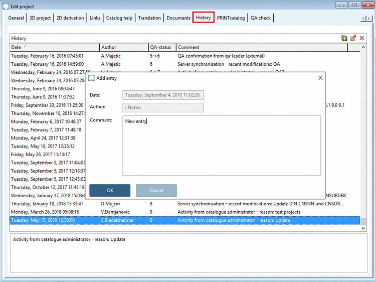 For catalog development under use of the PARTproject QA every status change in the catalog automatically sets a new entry. More information can be found under Chapter 6, PARTproject QA.