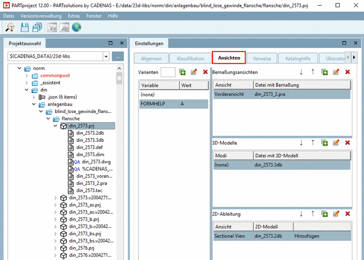 Here, determine the 2D derivations, which later shall be displayed in the PARTdataManager, in the docking window 2D derivation.