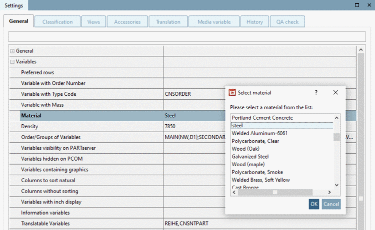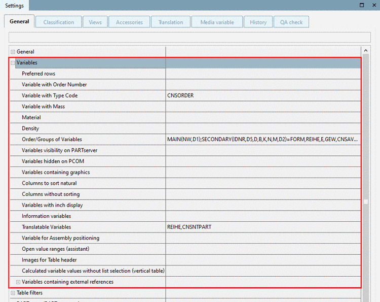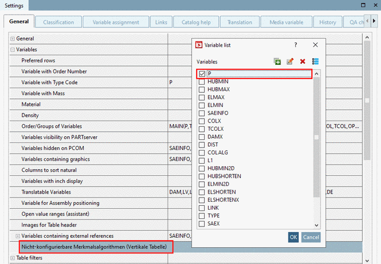 If you want to display table rows with graphics (*.png) in projects, first apply a new variable/column in PARTdesigner. Then enter the file name of the desired graphic into the single rows of the new column. Then open the dialog box Variable list in PARTproject (Browse button ) and activate the respective variable.