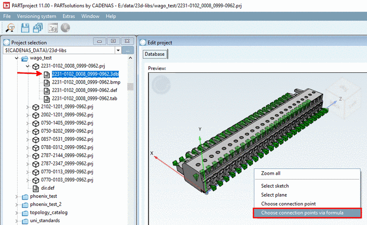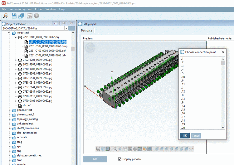Select the 3db file. Now all available connection points are displayed. In the dialog box Choose connection point all points are displayed as well. Now you can classify single connection points, which does not make sense in this example, because a large number of connection points has to be classified in the same way.