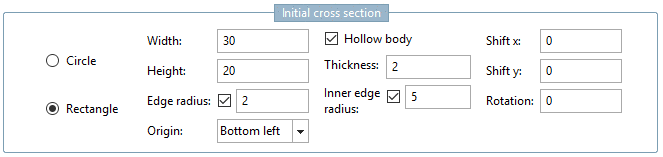 displayed which describes the error in detail.Cross section input fields: Depending on the selection of the cross section type according input fields are shown: