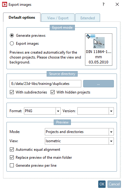 Solution: Set target file to CADENAS standard 400x400, color depth 8 bit. When using automated generation this is ensured, if under Picture size, the option STANDARD is selected.