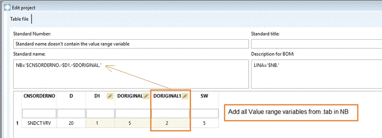 Solution: Include all value range variables from project table under Short name (max. 16 characters).