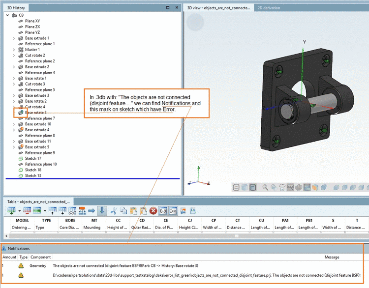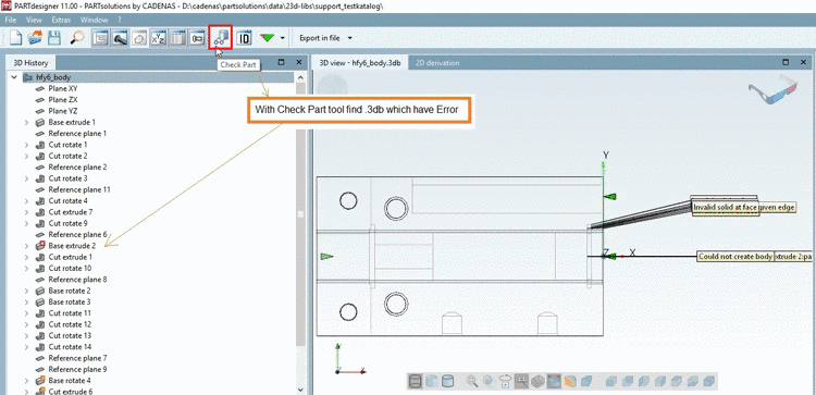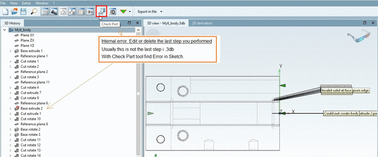 Solution: Open .3db in PARTdesigner. Find error in sketch with Check Part
