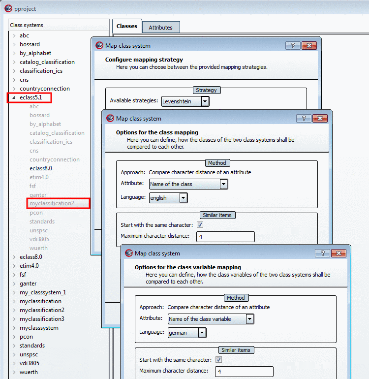 Perform the mapping with the help of the Levenshtein algorithm and the settings Attribute: Name of the class and Attribute: Name of the class variable.