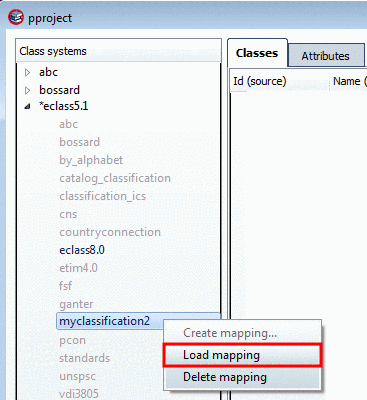 Open the menu at eClass5.1 and perform a double-click on the class system to be mapped (in this case your own class system) or, in the context menu, click on Create mapping....