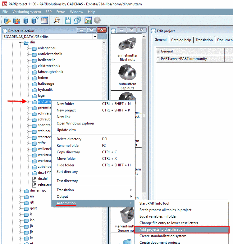 PARTproject -> Extras menu -> Class systems: edit...: