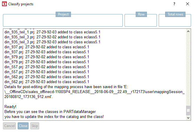 -> The process is logged in the dialog box Classify projects.