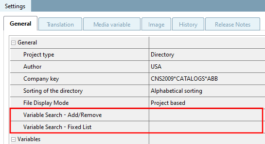 If variables are entered in PARTproject under Settings > General tab > General > Variable search - Add/Remove [Variable Search - Add/Remove] variables, these variables are sorted before the automatically determined common variables. The entry applies to all subdirectories.