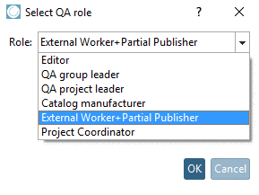 Note In the role External worker+Partial Publisher the right for partial publishing is permanently integrated. However, this right can administratively be given to each role in addition. Concerning partial publishing see Section 6.10.5, “ Generate QA catalog... | Publish Live state... ” -> Special notes.