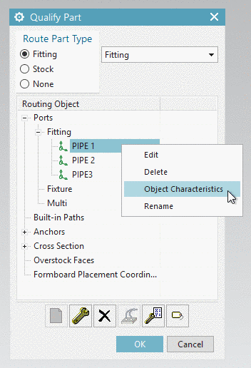 In the context menu of PIPE1, click on Object Characteristics.