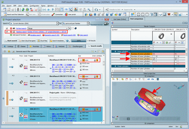 Those topological parameters which can be marked in the 3D view (Inner Cylinders, Outer Cylinders for example), have a checkbox in the listing under Tabular Compare.