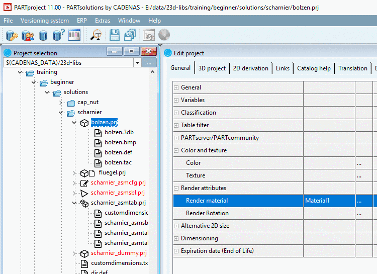 attributes color and texture are displayed in PARTdataManager and Online