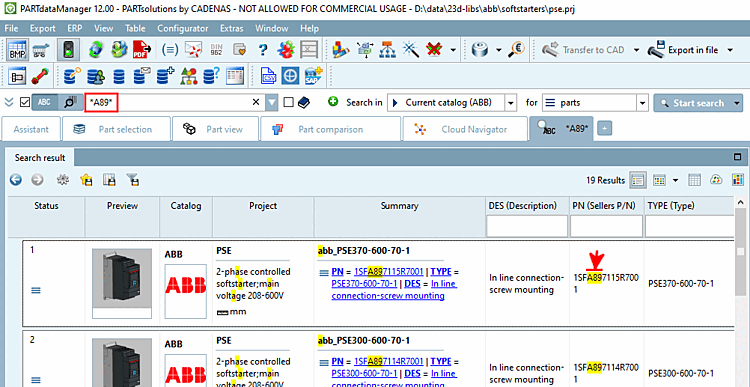 Up to now combinations of text and number have been split at the transition positions between text and number so that respective parts could be found. As of V12 these combinations are completely split in their components so that any string can be found when using the wildcard (*). The splitting is not only used for order numbers but for any variables.