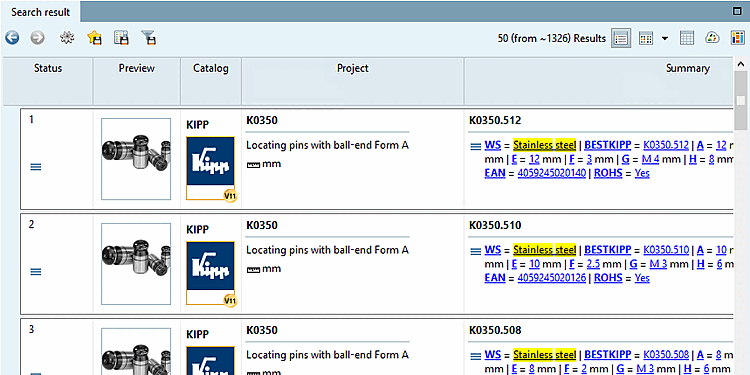 If, on the other hand, you only want hits with "Stainless steel", e.g. you want to exclude hits with "Steel" alone, then combine Phrase search and Strict search.