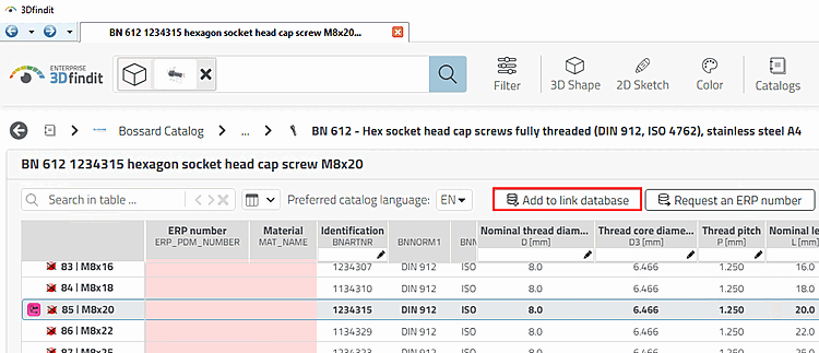 The functionality from Add to Link Database [Add to link database] improved. A geosearch is automatically performed in the background and similar parts that already have an ERP number (as in the case of an ERP number). Search with preferred row filter on ).