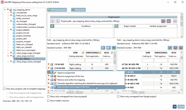 ...... or on the context menu command Map resolved value ranges of this line of a single row.