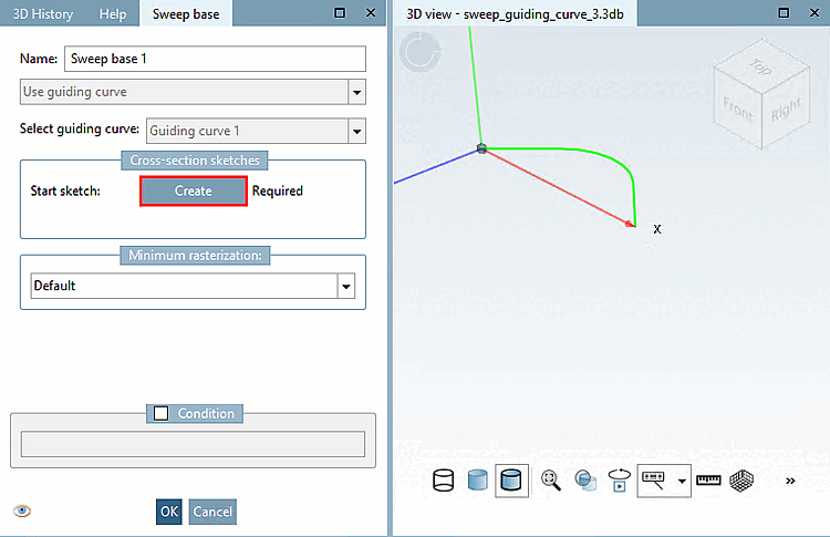 Guiding curve, click on the Create basic curve [Create sweep base] command.Create the cross-section sketch.