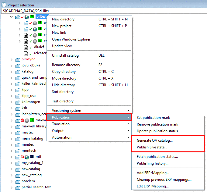 It is recommended to perform catalog publications by only 1 publishing manager (or maximum 2) to have best overview all the time. If the "Publishing Manager" is modeler at the same time, he should keep his own working status separated from the general $CADENAS_DATA used for publishing with a second $CADENAS_DATA.